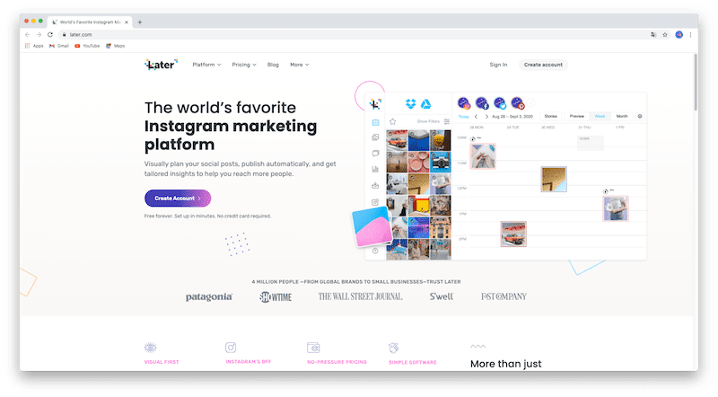 Later é uma das ferramentas mais económicas e valiosas para planear, programar e analisar visualmente conteúdos de redes sociais, especialmente para Instagram, Facebook e Twitter.