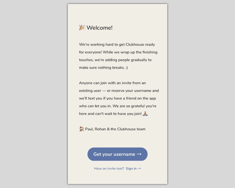 Segundo Paul Davidson, CEO do Clubhouse, “a app acabará por ser aberta para todos, incluindo utilizadores de dispositivos Android”. Mas a verdade é que a rede social está ainda a dar os primeiros passos nessa selva digital eles estão começando devagar: qualquer pessoa que conseguir receber um convite, recebe apenas dois novos convites para oferecer a outras pessoas.