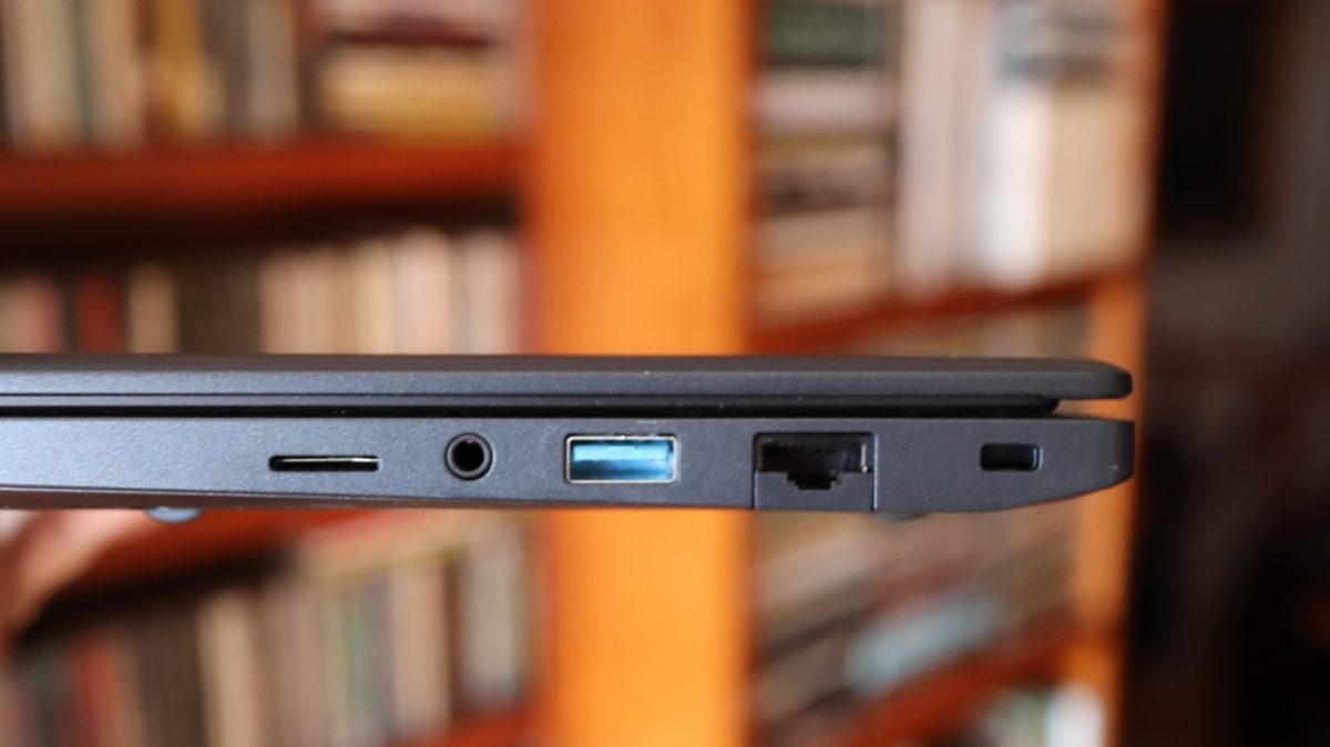 Temos ainda uma porta WLAN, fantástico para ligar ao router ou a um powerline e ultrapassar os problemas do WiFi fraco, e um leitor de cartões MicroSD. Não entendo como não é um de tamanho normal, mas pelo menos existe, prática cada vez mais rara nos novos modelos. E, claro, o combo áudio in/out via 3,5mm.