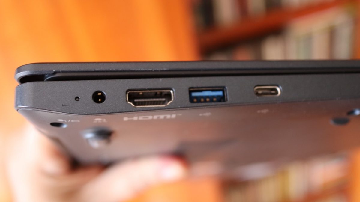 Este é um dos pontos muito a favor do Dynabook Satellite Pro C50: temos porta HDMI, três USB 3.2 Gen1 (2x Tipo A e 1x Tipo C). Esta porta Tipo C serve também para recarregar, mesmo que venha um AC incluído, e também serve como Display-Port. Para recarregar por USB temos que ter um “brick” com, no mínimo, 45W.