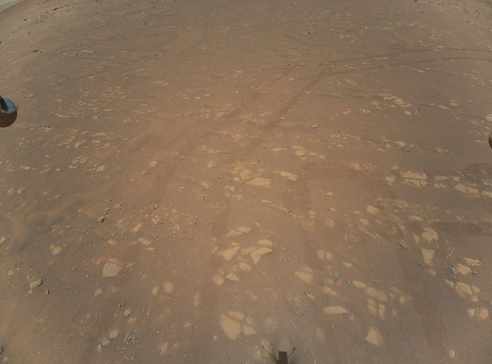 Além do vídeo de voo, foram também reveladas fotografias capturadas pela sua câmara colorida, que nos permite ver na perfeição as marcas deixas pelo rover Perseverance na exploração de Marte.