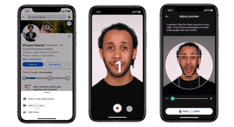 Depois de fazer upload de um breve vídeo de introdução ao seu perfil, um círculo laranja aparecerá ao redor da foto de perfil. Quando alguém visitar seu perfil, uma prévia será reproduzida automaticamente e sem som, até que o vídeo seja clicado para adicionar o áudio. De acordo com um estudo recente realizado nos EUA, 76% dos recrutadores acreditam que ver um vídeo pré-gravado de um candidato a emprego seria útil.