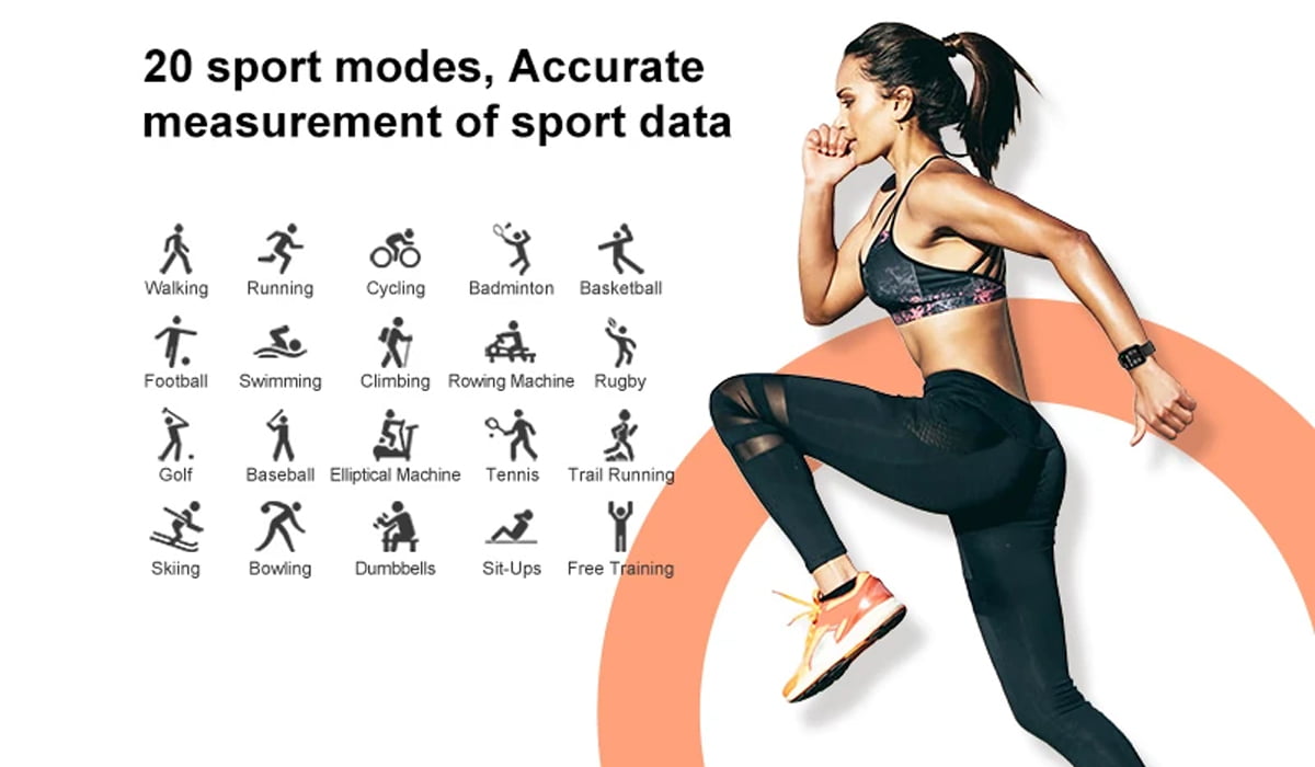 - Suporte para 20 desportos (ex: caminhada, corrida, ciclismo, badminton, basquetebol, futebol, natação, gold, etc.)