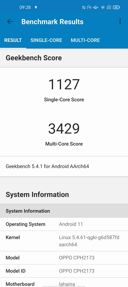 Como seria de esperar, o leitor de impressões digitais é um sensor ótico e escondido no ecrã, com um desempenho praticamente irrepreensível. A sua animação é personalizável as definições, com o ColorOS a dar-nos várias opções de animação para o desbloqueio (há ainda a possibilidade de optar por desbloqueio facial com a câmara de selfies).