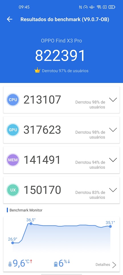 Como é claro, basta aceder às definições e selecionar o modo alto desempenho para percebermos que o Snapdragon 888 tem muito mais para dar, especialmente quando acompanhado pelos 12GB de RAM LPDDR5 e 256GB de armazenamento UFS 3.1 da nossa unidade de teste. Aliás, nada melhor que os habituais testes no GeekBench, AnTuTu e 3DMark para confirmar que o OPPO Find X3 Pro não deixa nada a desejar face aos rivais Samsung Galaxy S21 Ultra ou Xiaomi Mi 11 Ultra.
