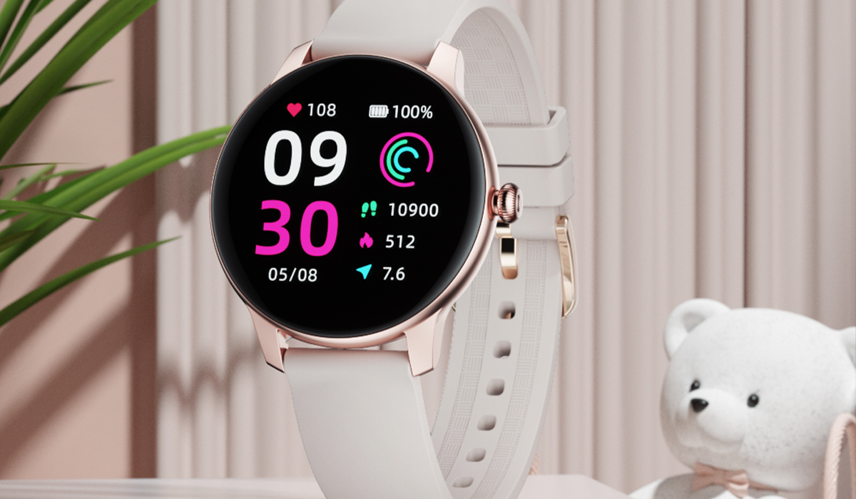 Neste caso, o IMILAB W11 apresenta-se como a escolha ideal para as senhoras, sendo um smartwatch concebido no público feminino, chegando com um design elegante e minimalista.