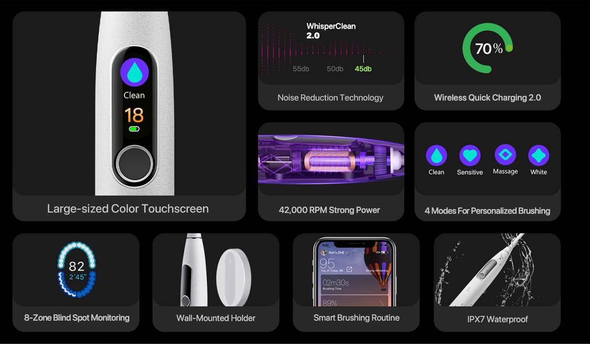 No que respeita às várias tecnologias e funcionalidades, a Oclean X Pro Elite vai conseguir dar resposta a todas as necessidades dos utilizadores: