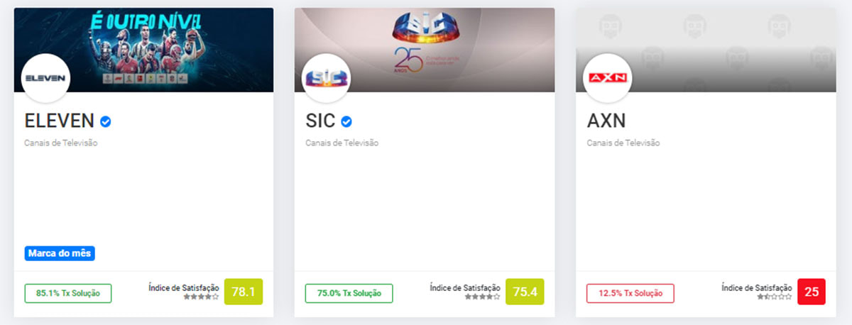 Inserida na categoria “Comunicações, TV e Media”, a ELEVEN foi distinguida pelo Portal da Queixa com um índice de satisfação de 78.1. O canal desportivo conquistou, dessa forma, o primeiro lugar no ranking da categoria, tendo sido classificada como Marca do Mês pelo terceiro mês consecutivo e, consequentemente, como “Marca Recomendada”, provando a excelente performance do canal no que toca a customer service.