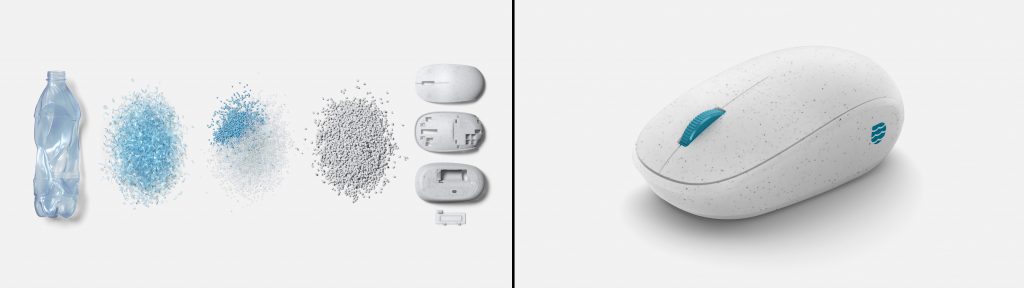 Pensando no ambiente, a Microsoft vem também oferecer um novo rato para utilizar com os seus dispositivos fabricado com materiais reciclados. A colaboração com a empresa SABIC, responsável pela produção de resina 20% de alta qualidade feita a partir de 20% de plástico reciclado dos oceanos, recuperado das suas águas ou das margens.