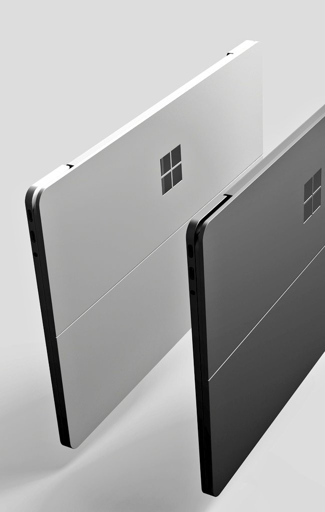 Curiosamente, este novo híbrido possui um design bem mais distinto das anteriores gerações do que inicialmente esperado. O ecrã, que aparentemente continua a poder separar-se do teclado, pode agora ser utilizado numa posição quase suspensa e bem ao estilo do iPad Pro 12.9 com o Magic Keyboard.