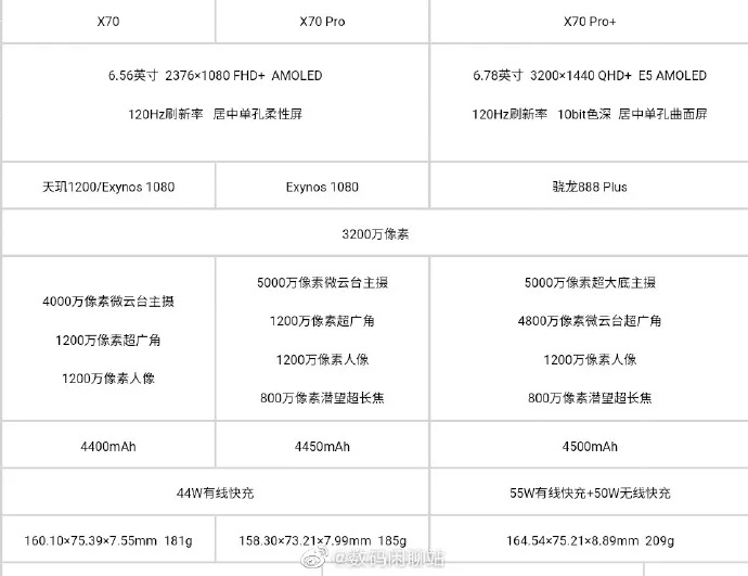 O mais modesto smartphone do trio é o Vivo X70, mas as suas especificações (segundo o leak de hoje) são ainda interessantes. Estamos aqui na presença de um smartphone que terá o mesmo ecrã Samsung E5 AMOLED de 6,56 polegadas da versão Pro e que chegará ao mercado com um processador Dimensity 1200 da MediaTek ou o Exynos 1080 da Samsung.