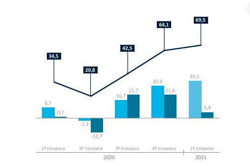 Alguns números ilustram bem este crescimento: segundo dados do SRIJ, nos primeiros 6 meses do ano, foram mais de 135 milhões de euros de receita para os operadores de apostas à cota (superando os casinos online), dado que vem crescendo a cada trimestre, como mostra o gráfico.
