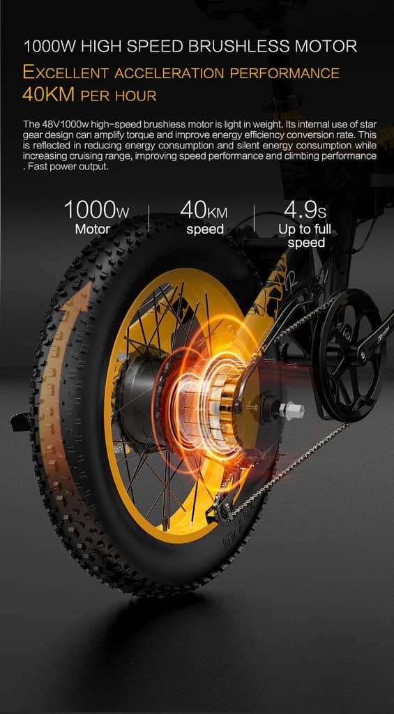 Talvez se pensarmos no que significa uma velocidade de 40 km/h numa bicicleta se levante a questão da estabilidade, que neste caso está mais do que assegurada por um conjunto de sistemas de controlo e por dois pneus todo-o-terreno de 20 polegadas bem largos e capazes de abraçar tanto o tapete mais plano como os terrenos onde a aderência pode estar dificultada. Além disso, a viagem é mais cómoda quando contamos com um sistema de suspensão ajustável frontal e traseiro com molas lubrificadas a óleo que adapta a bicicleta urbana às características do terreno, seja ele citadino ou mais off-road.