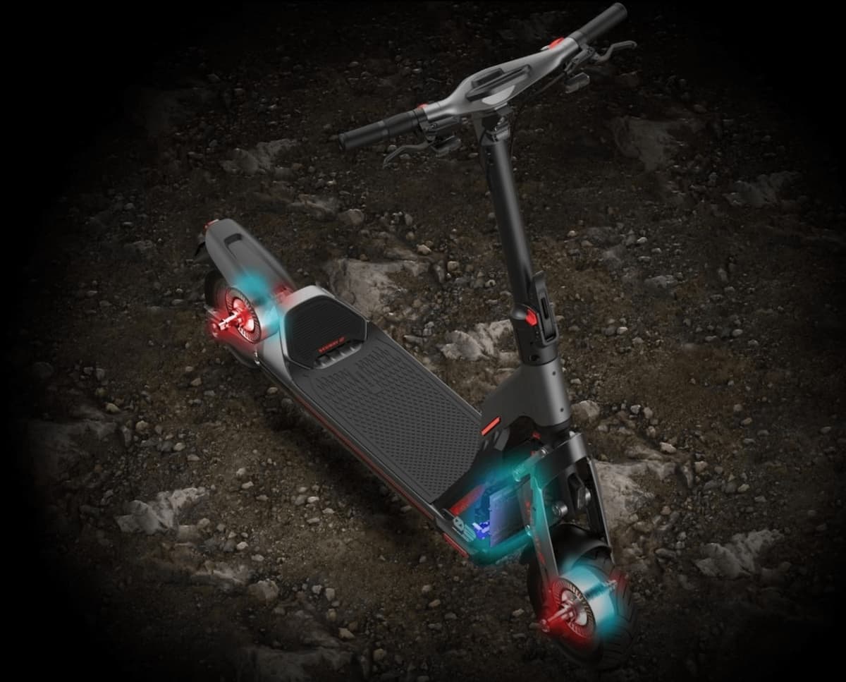 De destacar a tração às duas rodas, que podes ajustar na app móvel, e potência total de 3000W. Graças às luzes LED dianteiras e traseiras, terás maior visibilidade. Com os refletores nas partes dianteira, traseira e lateral, facilita a localização em condições de pouca luz.