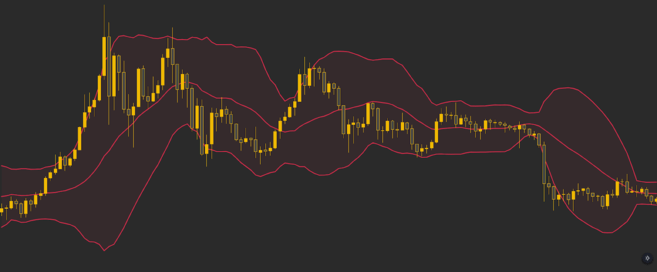 Essas bandas são depois colocadas num gráfico, juntamente com a ação do preço. A ideia é que, à medida que a volatilidade aumenta ou diminui, a distância entre essas faixas muda, apresentando uma expansão ou contração.