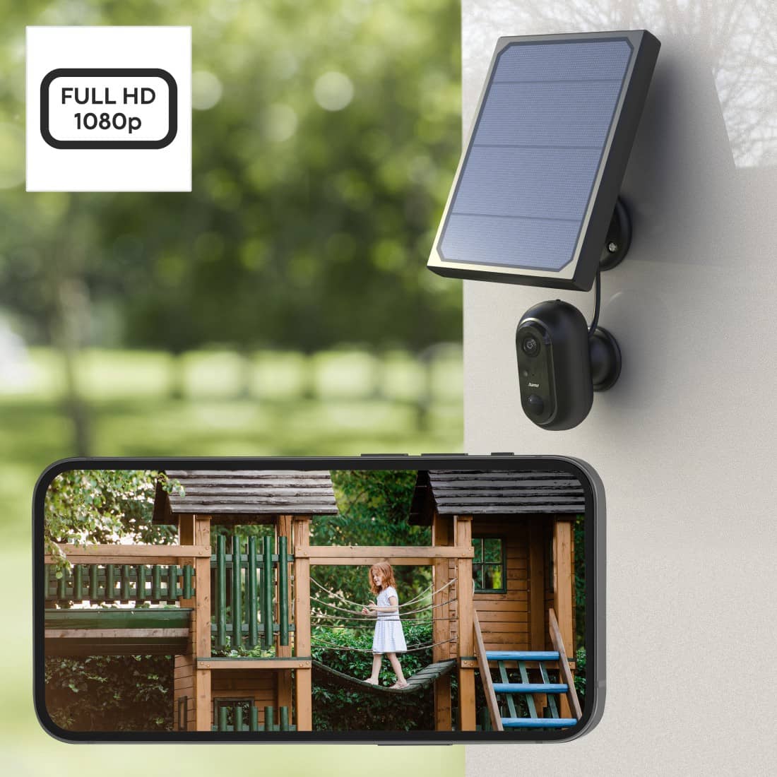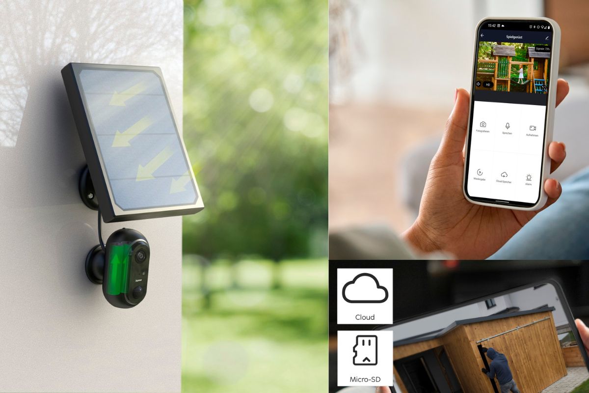 A Hama apresenta a Câmara de Vigilância Wi-Fi para Exteriores com operação autossuficiente (referência: 00176615), graças à inclusão de um módulo Solar.