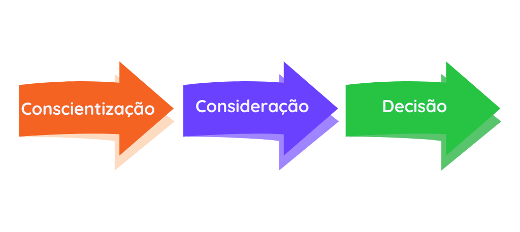 Composta pela Conscientização, Consideração e Decisão, vamos conhecer cada uma destas fases.
