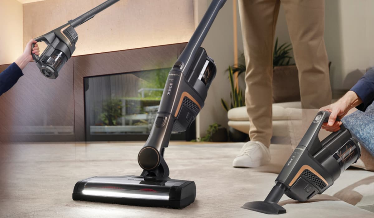 O design 3 em 1 da Miele adapta-se às necessidades de higiene para que, nenhum pó ou sujidade, seja deixado para trás. Os três modos facilmente ajudam a chegar a todas as áreas da casa, o modo conforto para a limpeza de grandes áreas, o modo de alcance para locais particularmente difíceis de chegar — como por exemplo por baixo de peças de mobiliário ou tetos — e o modo compacto para uma limpeza rápida.