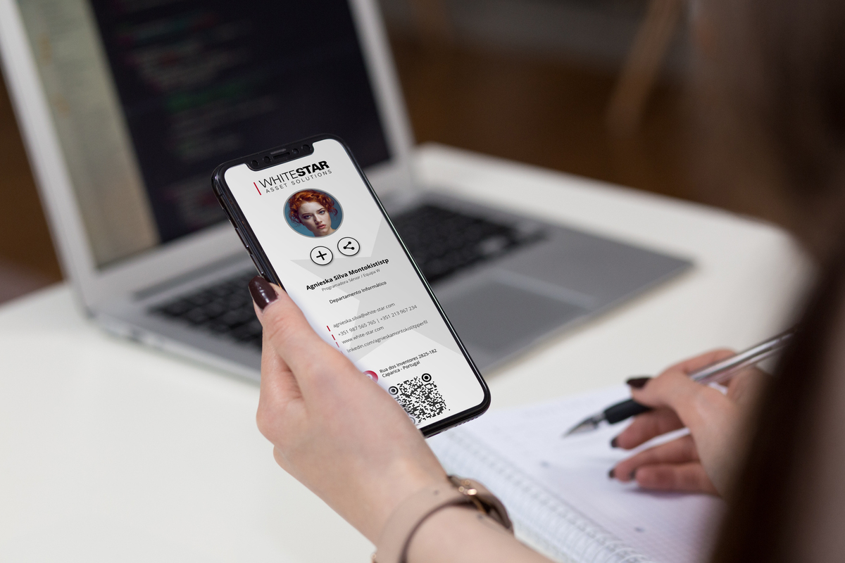 O Business e-card é uma solução tecnológica capaz de substituir por completo os cartões de visita tradicionais, trazendo funcionalidades adicionais. Trata-se de uma ferramenta que garante um aspeto cuidado e profissional e é facilmente partilhável através dos canais mais habituais: WhatsApp, e-mail, SMS e Messenger. A par destas, a partilha pode ser feita através da leitura do QR code associado ao cartão, abrindo o mesmo no seu dispositivo. Depois pode carregar “adicionar aos contactos” e facilmente incluir este novo contacto.
