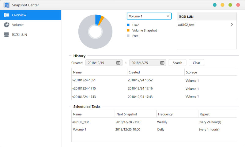 Outra vantagem evidente em matéria de virtualização de armazenamento diz respeito à tecnologia ASUSTOR snapshot, que proporciona a criação quase imediata destes chamados instantâneos – permitindo assim poupar uma quantidade significativa de tempo e capacidade de armazenamento quando comparado com os backups tradicionais de LUN. Caso os ficheiros fiquem danificados ou corrompidos, a interface simples e intuitiva permite aos administradores restaurar rapidamente os dados, concluindo a recuperação de desastres no mais rápido tempo possível e através de um serviço ininterrupto.