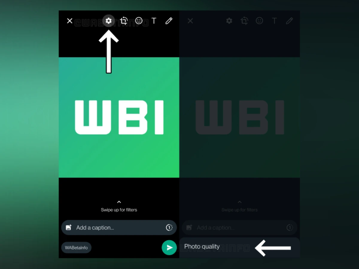 Ao olharmos para a imagem partilhada, vemos que a sua utilização será feita de forma muito simples. Quando fores enviar uma imagem vais passar a ter um novo ícone na barra presente no topo do ecrã. Através do ícone da “roda dentada” vais poder escolher a qualidade desejada para o envio da foto.