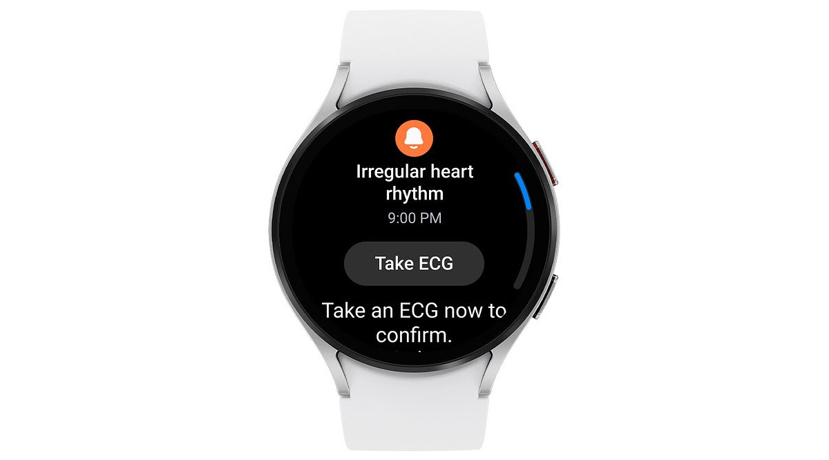 A funcionalidade IHRN, ativada na aplicação Samsung Health Monitor, analisa os batimentos cardíacos durante um período de leitura constante. Esta análise é realizada em segundo plano pelo sensor BioActive do Galaxy Watch. Se forem detetadas várias medições consecutivas irregulares, o Galaxy Watch alertará o utilizador para uma possível atividade de fibrilhação auricular, sugerindo que seja realizado um ECG manual para uma medição mais precisa.