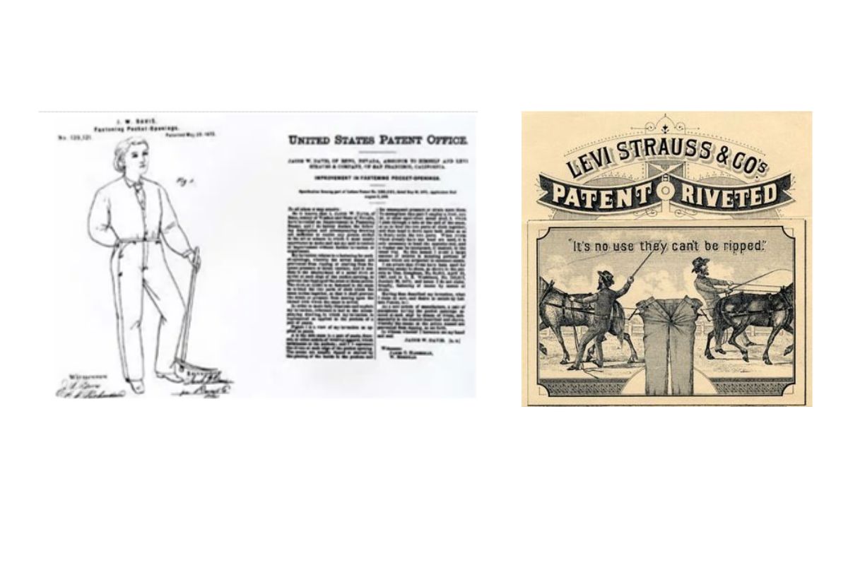 O que esta patente protegia era o “melhorar o acabamento da abertura dos bolsos”, ou seja, os rebites de cobre que hoje estão em todos os modelos de todas as marcas.