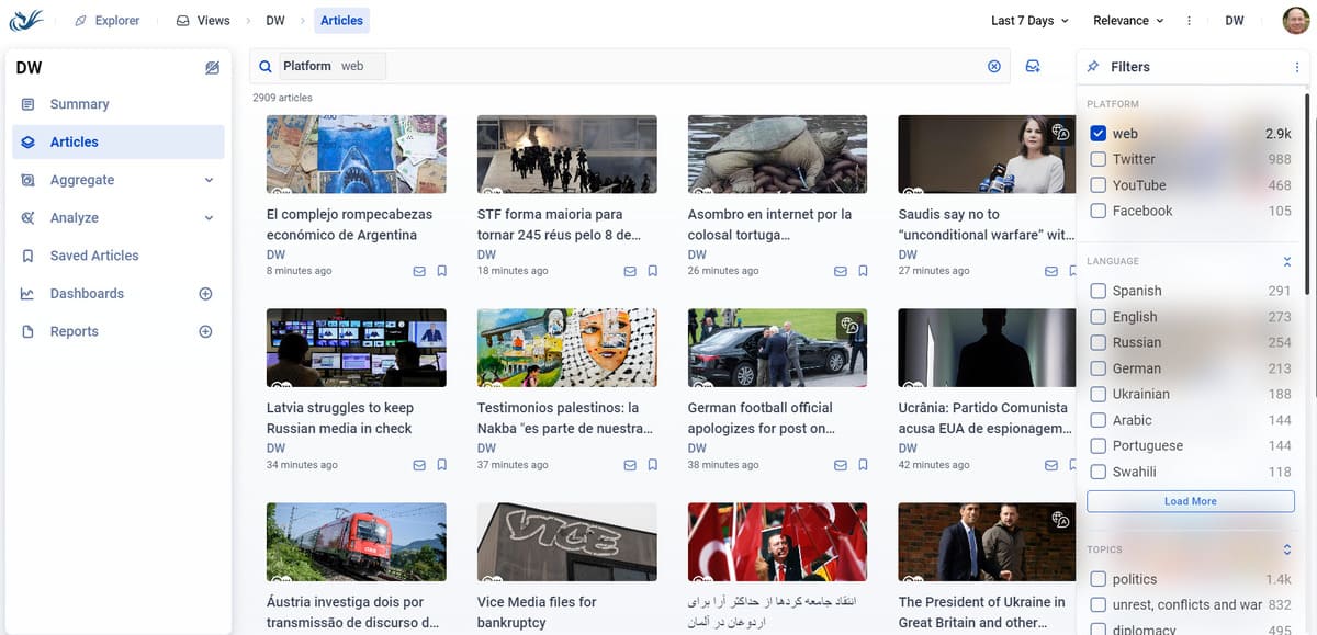 Esta plataforma, que incorpora tecnologias de Inteligência Artificial (IA), permite a monitorização em tempo real de media de todo o globo, com a capacidade de traduzir qualquer conteúdo para inglês.