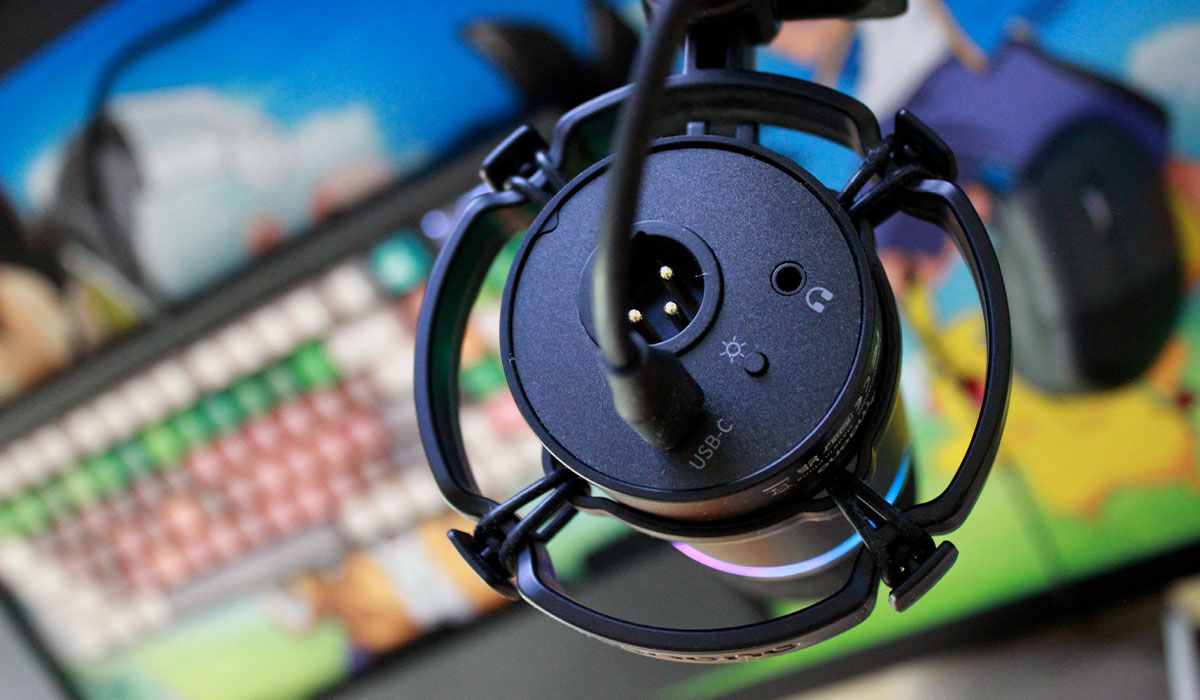 Quando pensamos em equipamento de streaming, o design pode não ser a primeira coisa que nos vem à mente. No entanto, o Maono PD200X é a prova de que é possível combinar funcionalidade e estética. A sua estrutura toda em preto é simultaneamente discreta e sofisticada, mas é a iluminação RGB que realmente rouba a cena. E se pensas que a beleza está apenas no exterior, enganas-te. O microfone vem acompanhado de um suporte anti-vibração, garantindo que qualquer movimento acidental não interfira na qualidade do som.