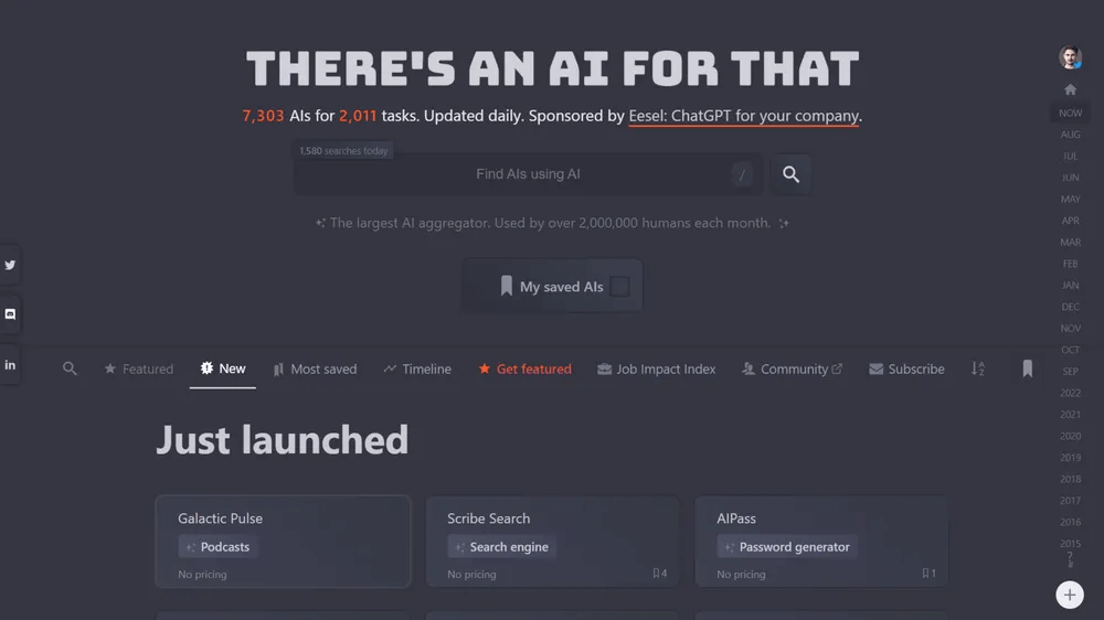 Podendo ser traduzida como “Existe uma IA para isso”, There Is an AI for that é um dos sites mais importantes para entusiastas da inteligência artificial nos dias de hoje.