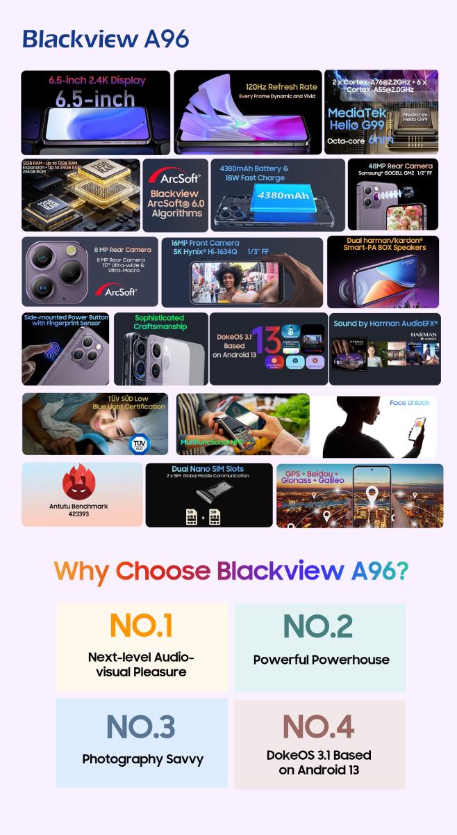 Com um design elegante, desempenho robusto e funcionalidades fotográficas avançadas, o Blackview A96 promete ser um forte concorrente no mercado de smartphones.