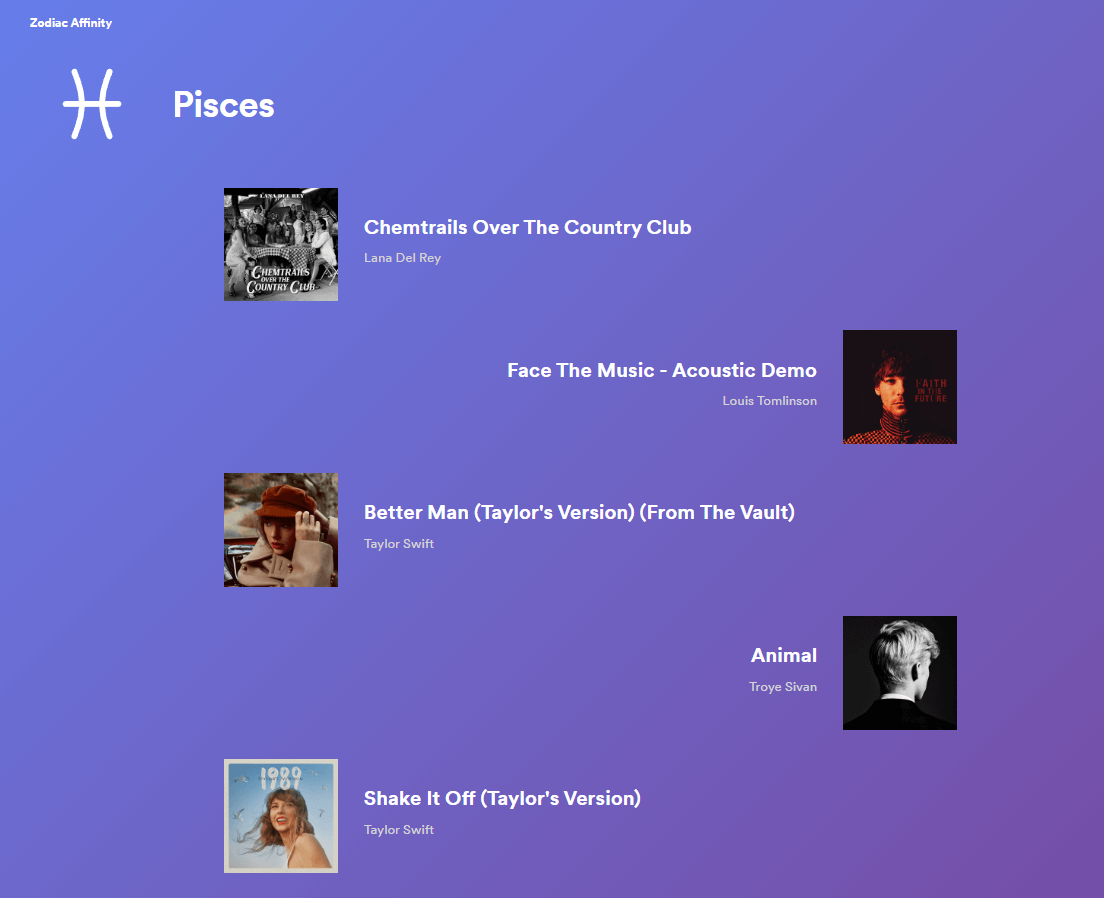 Se você adora astrologia, o “Zodiac Affinity” é perfeito para você. Ele escolhe cinco de suas músicas favoritas que se alinham com diferentes signos do zodíaco, proporcionando uma experiência única.