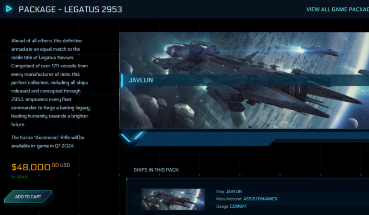 Isso significa que, em termos reais, cada nave custa agora mentos do que há alguns anos. A primeira versão deste pacote, lançada em 2018, custava 27.000 dólares e incluía 117 naves. Desde então, o número de naves e o preço do pacote aumentaram anualmente.