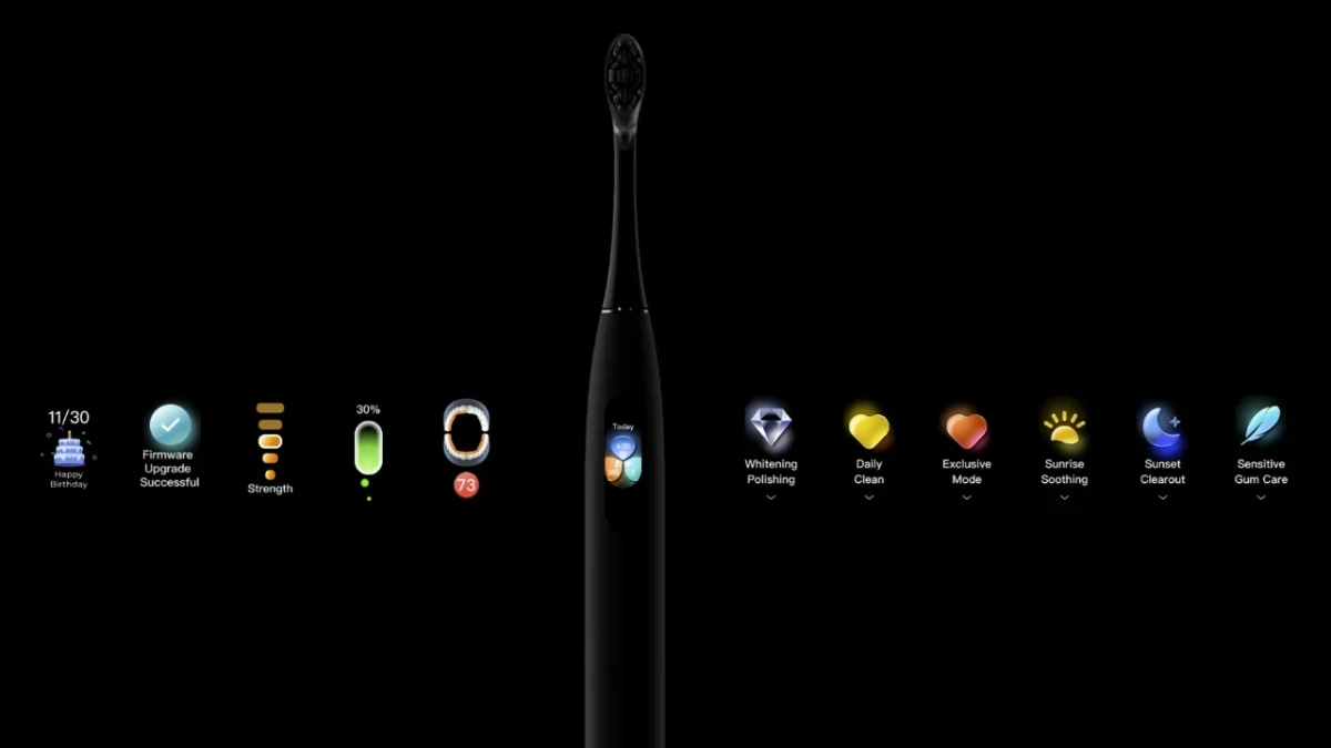 Com a Oclean X Ultra S, a tua higiene oral é única como tu. A escova oferece cinco modos de escovagem predefinidos, cada um com uma função específica: desde o modo “Sunrise Soothing” para uma limpeza suave e massagem das gengivas, até ao modo “Unlimited Clean” para uma limpeza profunda e completa.