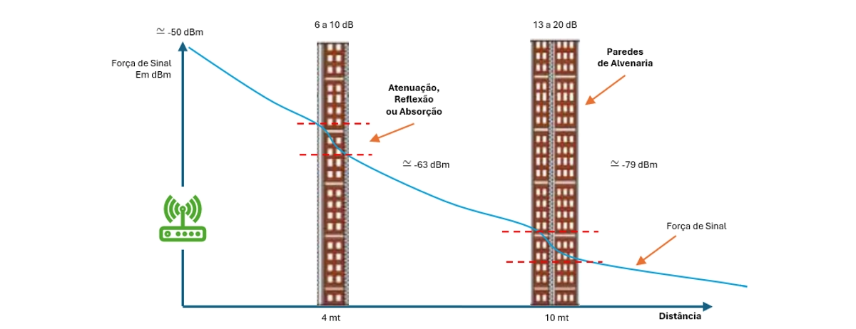 Quando um sinal Wi-Fi encontra um obstáculo, como uma parede ou um objeto metálico, parte desse sinal é refletida ou absorvido. Essa reflexão vais afetar a intensidade da força do sinal.