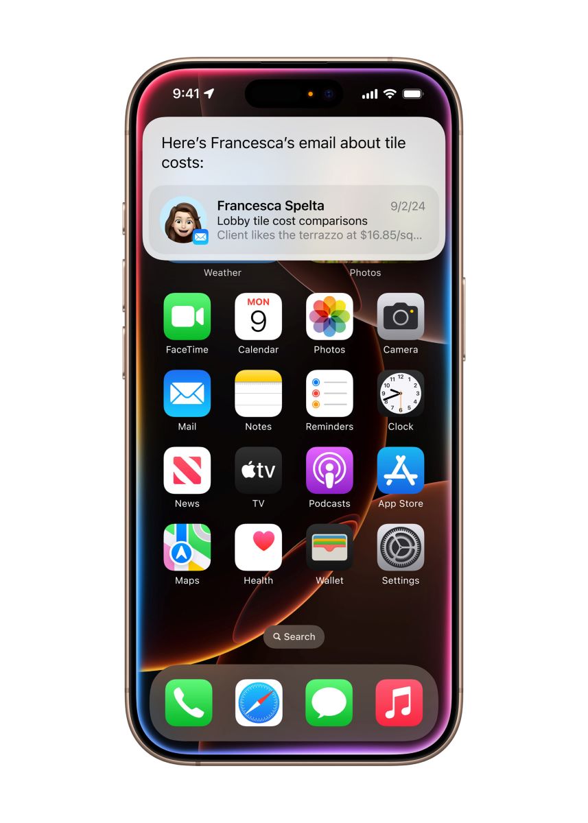 A Siri, assistente de voz da Apple, também foi otimizada pela Apple Intelligence, com um design mais intuitivo e uma maior compreensão das intenções dos utilizadores, mesmo quando as instruções não são dadas de forma perfeita.