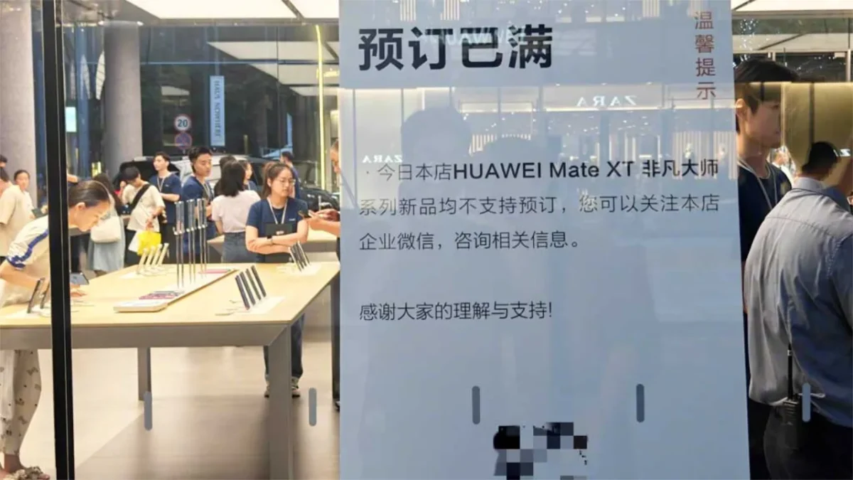 A notícia chegou através da conta Weibo @PacificTechnology, que relatou que o limite de reservas para o Huawei Mate XT foi atingido na loja emblemática MixC em Shenzhen. A loja rapidamente afixou um aviso na porta, informando os potenciais compradores: