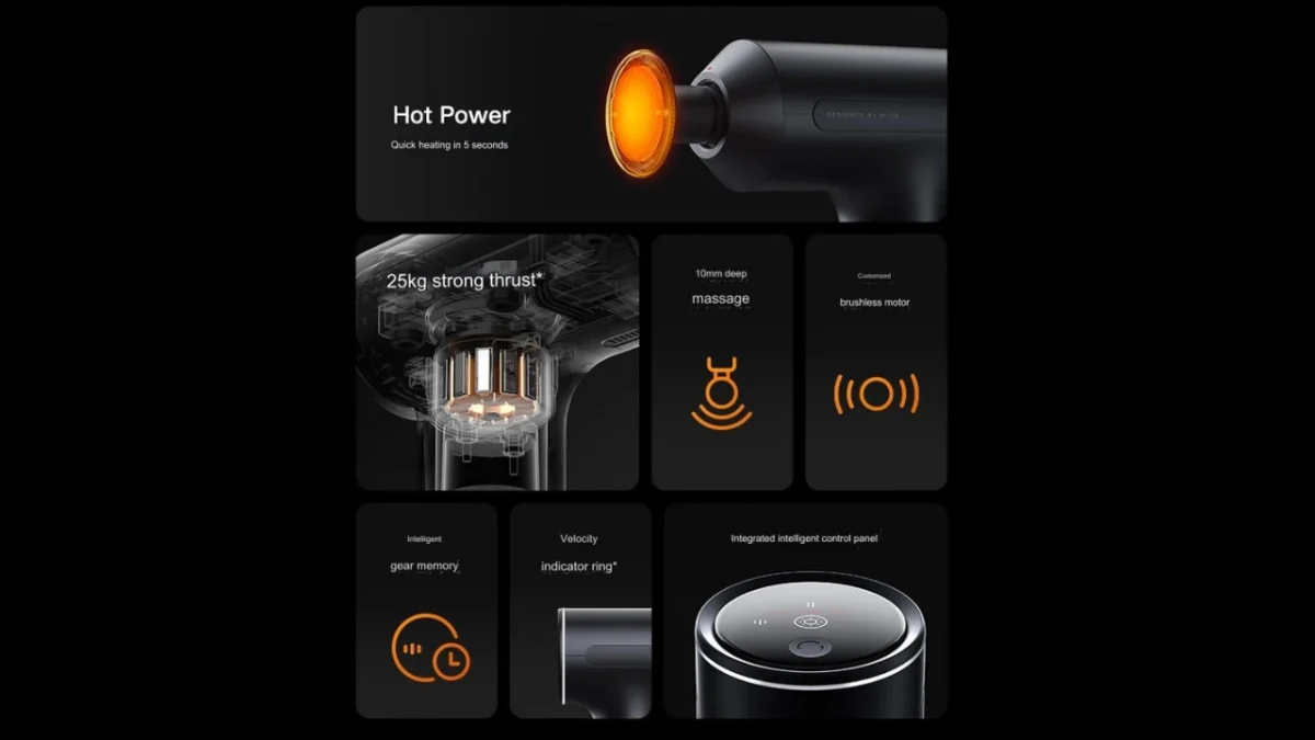 Para complementar esta potência, a Xiaomi incluiu quatro cabeças intercambiáveis com o dispositivo. Cada um destas cabeças foi desenhado para trabalhar em diferentes zonas do corpo, aumentando assim a versatilidade do aparelho e permitindo uma massagem mais direcionada e eficaz.