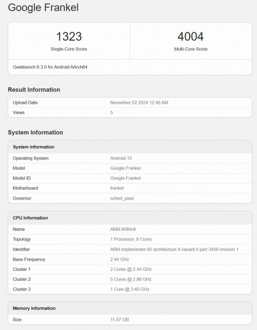 Um dispositivo misterioso, identificado como “Google Frankel”, surgiu recentemente na plataforma GeekBench. As especificações reveladas parecem confirmar parte dos rumores anteriores sobre o Tensor G5, mas também trazem algumas surpresas interessantes.