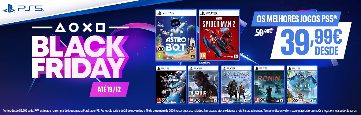 A campanha Black Friday incluirá uma ampla seleção de jogos em formato físico para PlayStation®5 e PlayStation®4. Os descontos estarão disponíveis tanto nos pontos de venda habituais como na PlayStation Direct, até 19 de dezembro.