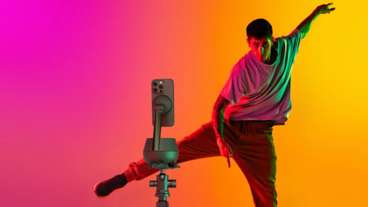O Auto-Tracking Stand Pro, lançado originalmente por 150 dólares, tem a capacidade de rodar 360 graus e inclinar-se 90 graus, garantindo que o sujeito está sempre enquadrado na imagem. Este suporte inteligente integra ainda carregamento sem fios MagSafe de 15W, permitindo manter o iPhone com bateria durante as longas sessões de gravação.