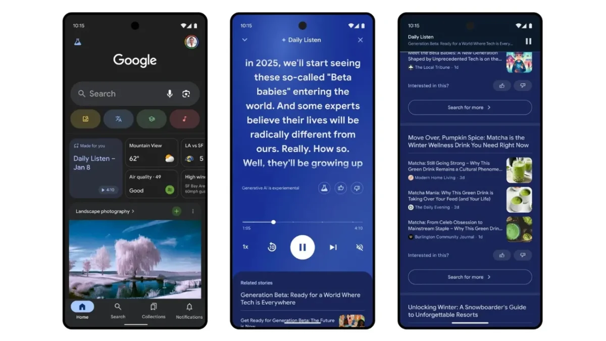 Esta novidade segue os passos de outros projetos similares da Google, como o Audio Overviews para o NotebookLM. A empresa tem vindo a explorar diferentes formas de apresentar conteúdo personalizado através da IA, como demonstrado pelo lançamento dos AI Search Overviews no ano passado.