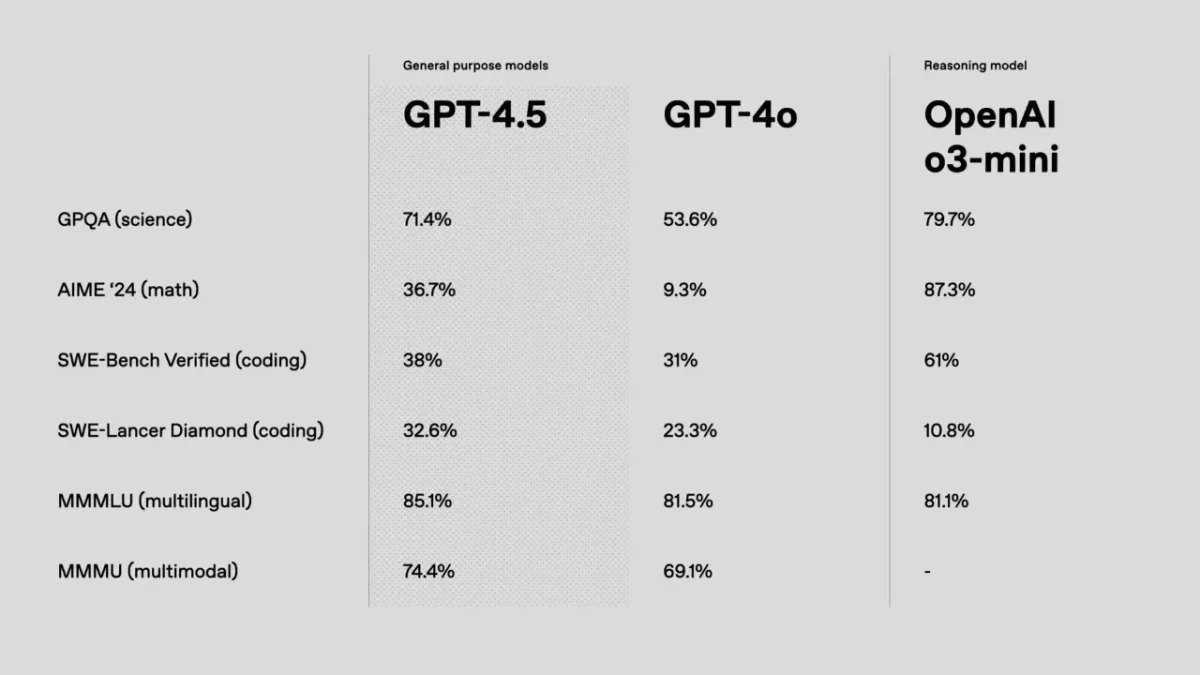 Embora supere modelos anteriores em conhecimento geral, o GPT 4.5 mostra limitações em cenários que exigem raciocínio estruturado: