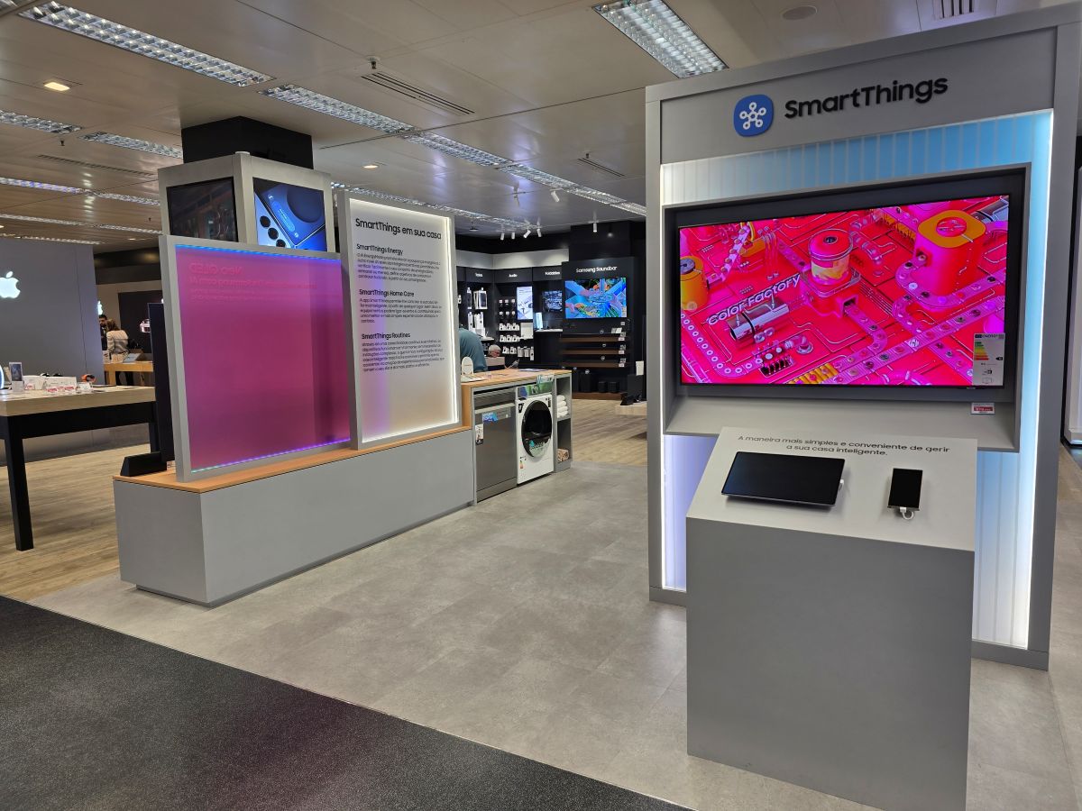 Com o novo layout de loja, a Samsung tem o intuito de oferecer experiências mais personalizadas e interativas, destacando o ecossistema One Samsung através da plataforma SmartThings.