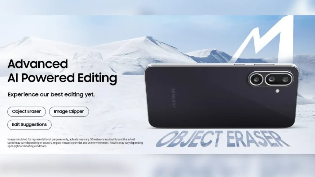 A Samsung não deixou de lado as capacidades de inteligência artificial no M56. Entre as funcionalidades disponíveis estão o Object Eraser, que permite eliminar elementos indesejados das fotografias, o Image Clipper, para recortar objetos de forma automática, e sugestões inteligentes de edição que ajudam o utilizador a obter o melhor resultado possível sem esforço.
