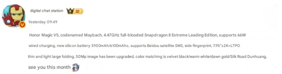 Apesar de a apresentação oficial estar a poucos dias de distância, as fugas de informação já nos deram um vislumbre bastante completo do que esperar. E se os rumores se confirmarem, o Honor Magic V5, com o nome de código “Maybach”, não vem para ser apenas mais um no mercado. Pelo contrário, chega com especificações de topo, pensadas para competir diretamente com os melhores, especialmente no campo da fotografia, onde promete ser uma verdadeira surpresa. Se estás a pensar investir num dobrável em breve, este é um modelo que deves ter debaixo de olho.
