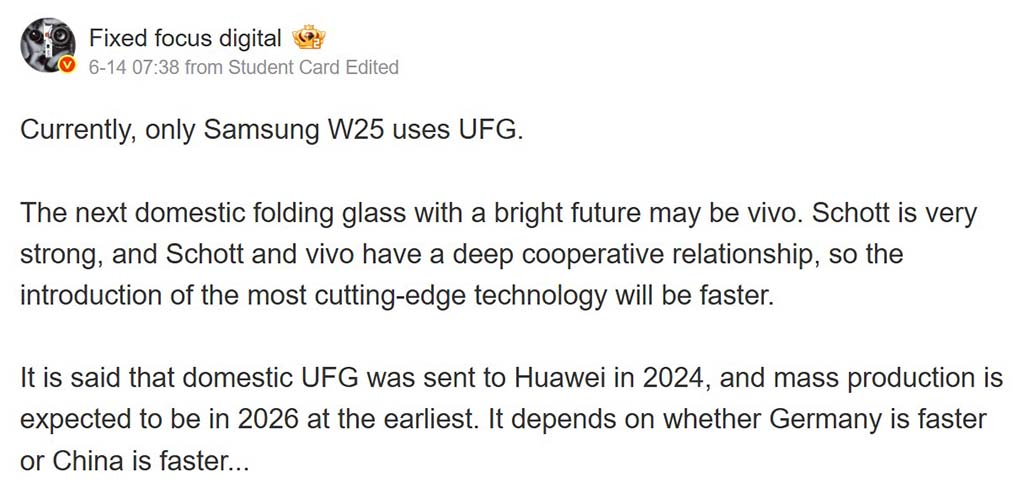 A Huawei já recebeu o primeiro lote destes painéis no ano passado e prevê-se que a produção em massa arranque em 2026, altura em que o Mate XT 2 deverá chegar ao mercado equipado com esta tecnologia inovadora. Até ao momento, apenas o Samsung W25 utiliza um ecrã UFG, colocando a Huawei como uma das primeiras marcas a apostar nesta solução para os seus modelos dobráveis de topo.