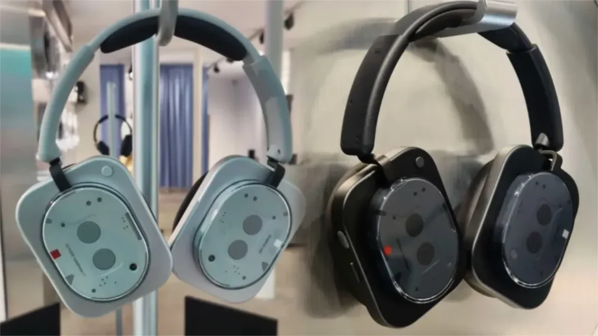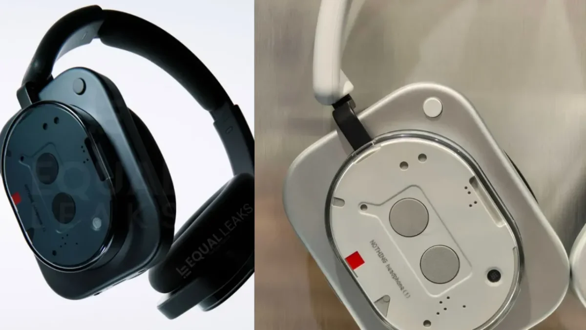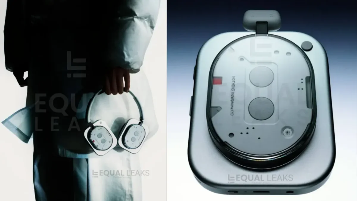 Na lateral, a marcação “Nothing headphone (1)” está claramente visível, mantendo a consistência com a forma como a marca identifica os seus outros dispositivos. É um visual que certamente não passará despercebido e que reforça a aposta da Nothing em criar produtos que são tanto peças de tecnologia como de design.