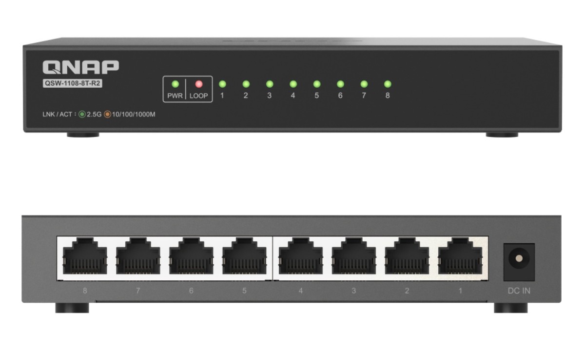 A QNAP Systems anunciou o lançamento do QSW-1108-8T-R2, um novo switch de rede não-gerido com oito portas 2.5GbE.