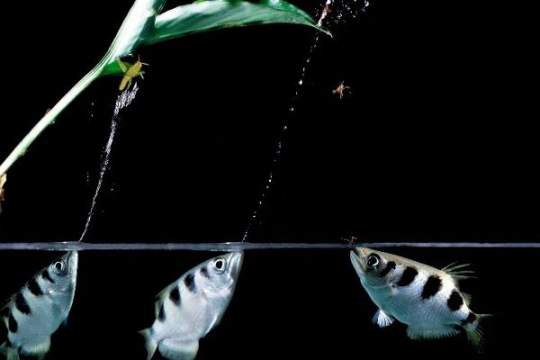 "– Bond, Peixe Bond": Peixe-arqueiros disparam jato d'água em insetos para devorá-los em seguida. Imagem: A&J Visage; Alamy O peixe-arqueiro ...